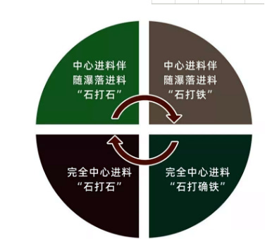 1、中心進(jìn)料伴隨瀑落料“石打石”工作原理