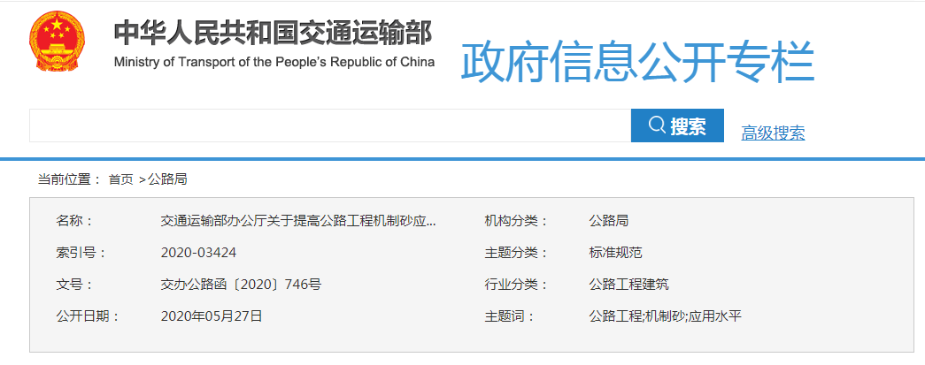 但是,今日機制砂行業(yè)迎來新的曙光,為解決河砂緊缺局面,交通運輸部發(fā)布《交通運輸部辦公廳關于提高公路工程機制砂應用水平的通知》,對機制砂石質量給出具體參考標準,各地可結合實際情況在應用過程中制定實施細則,不斷加強機制砂生產與應用過程中的質量管控,確保機制砂質量。